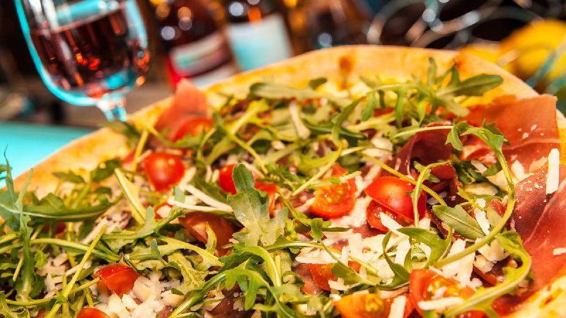 Italiana 15 € Mozzarella, tomate fraîche, jambon cru, roquette, copeaux de parmesan