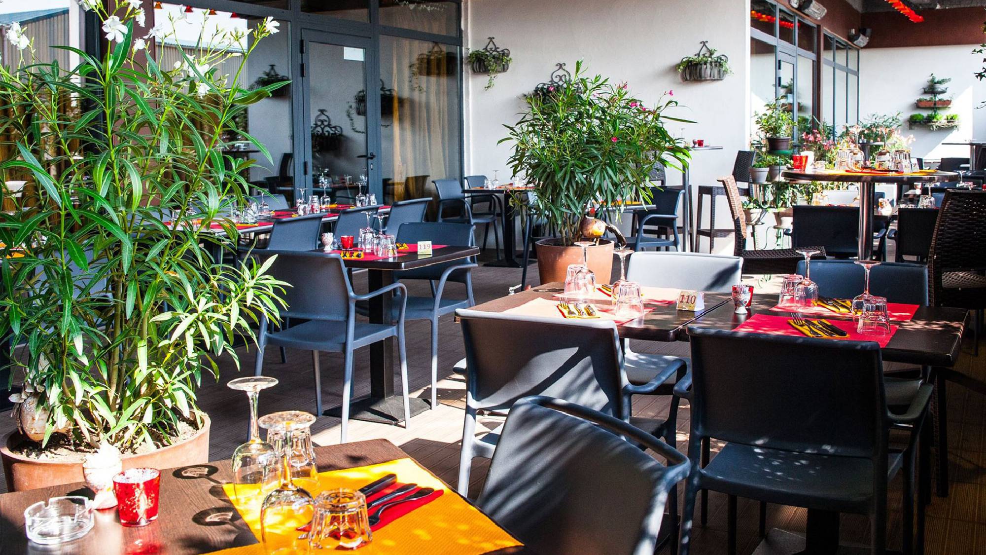La terrasse est couverte et abritée du vent, elle est arborée par de magnifiques plantes, de plus elle est chauffée et elle vous propose son espace fumeur.